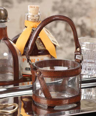Leather And Glass Jar With Stirrup Handle