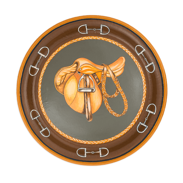 A lacquered wood equestrian tray entirely hand painted by Thai Artists in an art studio in Thailand. Beautifully handcrafted and ideal as a gift for your favourite equestrian or simply to add to your own home decor. Bamboo wood stand included.