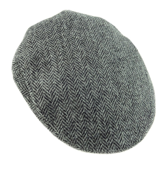 A classic cap with an elasticized back has a universal fit for most gentleman. Made of Harris Tweed fabric, hand woven in the Outer Hebrides of Scotland.