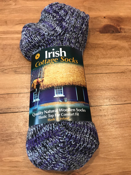 Feel the warmth and comfort of these beautiful woolen socks with elastic tops. Made in the West of Ireland near the shores of Lough Mask. A blend of natural wool, cotton and thermal fibres for extra comfort. The mix of yarn colours reflect the natural mood and shades of the Irish countryside as they change seasons. These socks have a unique insulating property to keep your feet warm in the winter and cool in the summer. A lovely combination with jeans and a pair of Wellies or Paddock boots. A classic country look!
