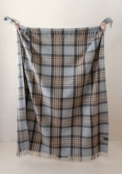Recycled Wool Waterproof Picnic Blanket in Light Grey Check