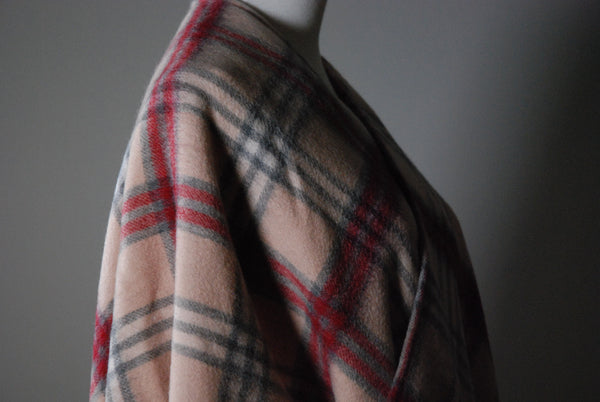 This shawl has a gorgeous neutral base with a twist of burgundy & grey rays running through it. This shawl is available only in petite length. Ideal for women under 5'6.